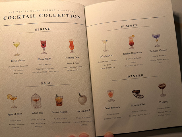 이브닝 칵테일은 18시 ~ 21시에 이용할 수 있었다. 5시 30분 쯤 부터 예약을 할 수 있고 6시 부터 순번대로 호출해서 입장하는 방식이었다. 라운지 앞에 앉을 공간이 부족해서 5시 30분 쯤에 예약하고 객실에서 기다리는 걸 추천한다.