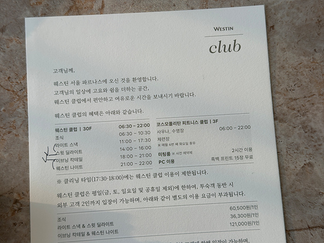 클럽룸이라 클럽 라운지 이용과 사우나을 무제한으로 이용할 수 있었다.