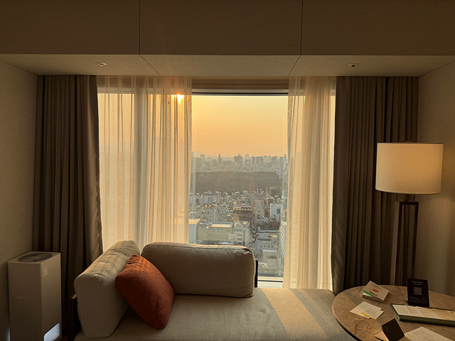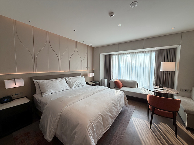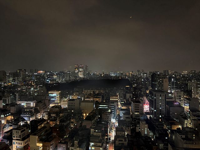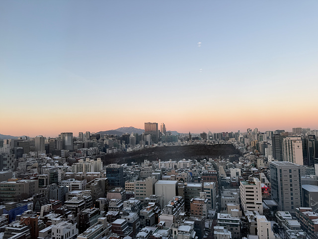 선정릉 방향 객실이었다. 킹사이즈 침대가 있고 창밖을 보며 뒹굴거릴 수 있는 소파가 있었다. 객실 층고가 좀 낮고 38m² 크기 객실인데 좀 좁게 느껴졌다.