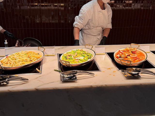 핫 플레이트 쪽 줄이 길어서 샐러드 부터 이용했는데 공간이 좁아서 그렇지 줄이 긴 편은 아니었다.