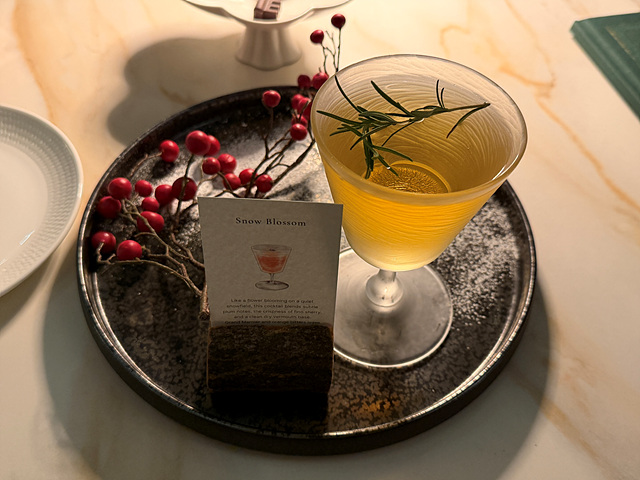 스노우 블라썸을 주문했는데 매실주 맛과 위에 얹어 놓은 로즈마리 향이 기억에 남는다.