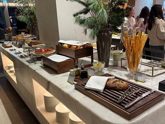 8시 쯤에 라운지로 아침 먹으러 갔는데 바로 입장 가능했고 한강쪽 뷰가 좋았다. 아셈타워가 시야를 가리는 건 살짝 아쉬웠다.