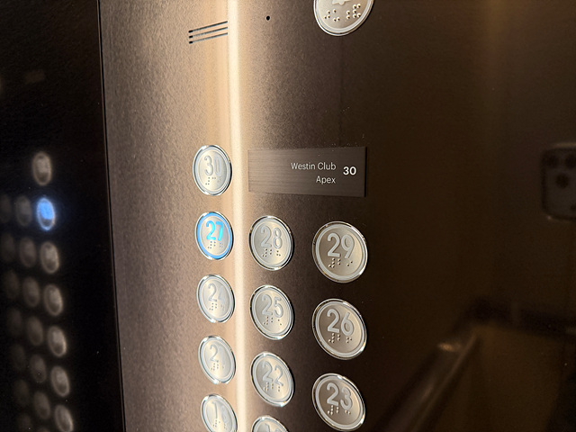 클럽 룸, 킹사이즈 침대로 예약했는데 27층 배정 받았다. 엘베에 카드키를 가져다대면 층 버튼이 자동으로 눌러졌다.