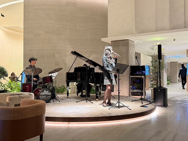 딸기 케이크 먹고 싶어서 로비에 있는 디에이트 갔는데 홀 케이크 밖에 없었다. 라이브 공연하길래 로비 바에 앉았다.