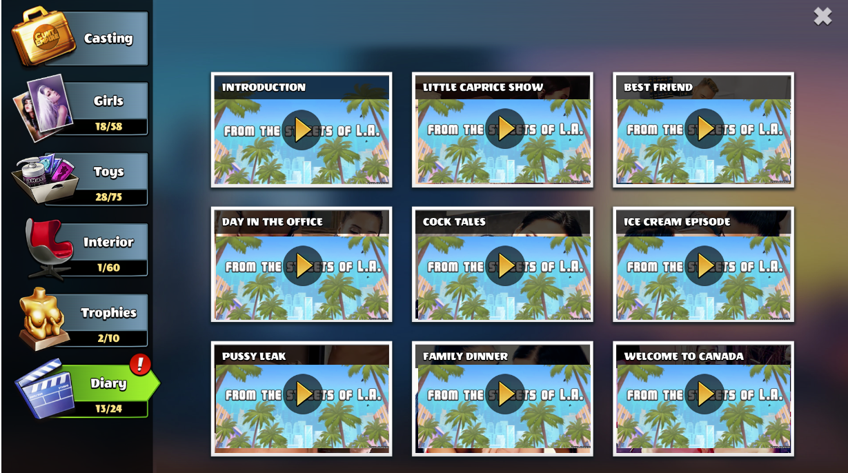 건물에 성인시설을 만들고 클릭해서 돈을 버는 전형적인 클릭 게임이다.