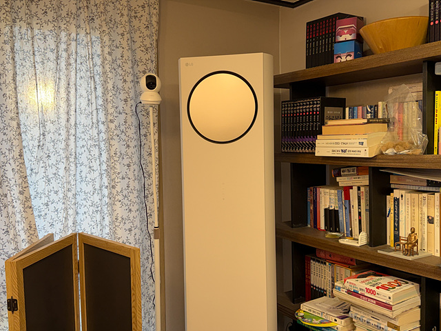 기존에는 책장 위에 올려놓고 썼는데 좀 더 괜찮은 위치로 바꿨다.